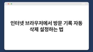 인터넷을 사용하다 보면 개인 정보 보호에 대한 걱정이 커지기 마련입니다. 특히 방문 기록이 남는 것이 불안하게 느껴질 수 있는데요. 이런 불편함을 해결할 수 있는 방법이 있습니다. 바로 인터넷 브라우저에서 방문 기록을 자동으로 삭제하는 설정을 하는 ...