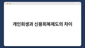 재정 문제로 고민하는 분들이 많습니다. 이럴 때 개인회생과 신용회복제도가 도움이 될 수 있는데요. 하지만 두 제도의 차이를 잘 이해하지 못하면 선택이 어렵습니다. 오늘은 개인회생과 신용회복제도의 차이점을 명확히 살펴보려고 합니다. 이 글을 통해 여러분의 상황에 맞는 ...