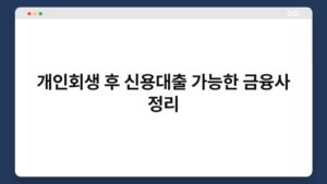 개인회생, 재정적으로 힘든 상황에서 새로운 시작을 위한 중요한 선택입니다. 하지만 회생 절차를 마친 후에도 신용 대출이 가능할지 걱정이 많으실 텐데요. 다행히도 개인회생 후에도 신용 대출을 받을 수 있는 금융사가 있습니다. 이번 글에서는 개인회생 후 신용대출이 ...