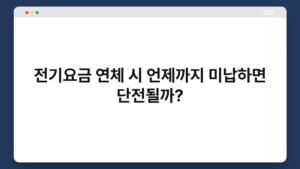 전기요금 연체, 누구에게나 한번쯤은 겪어볼 수 있는 일입니다. 하지만 연체가 길어지면 단전이라는 불상사로 이어질 수 있죠. 그렇다면 전기요금을 언제까지 미납하면 단전될까요? 이 글에서는 전기요금 연체 시 단전까지의 과정과 그 대처 방법에 대해 알아보겠습니다. 여러분의 소중한 ...