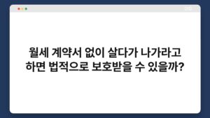 주택에 거주하면서 월세 계약서 없이 지내는 경우, 나가라는 요구를 받을 때 법적으로 보호받을 수 있을지 궁금하신가요? 많은 분들이 이러한 상황에 처했을 때 어떤 권리가 있는지, 그리고 어떻게 대처해야 하는지를 모르고 계십니다. 이 글에서는 월세 계약서 ...