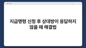상대방이 지급명령 신청 후 응답하지 않으면 어떻게 해야 할까요? 많은 분들이 이 상황에서 당황하게 되죠. 지급명령은 채권자가 채무자에게 빚을 청구할 수 있는 중요한 절차입니다. 그러나 상대방이 응답하지 않는다면, 그 다음 단계에 대해 고민해야 합니다. 이 ...