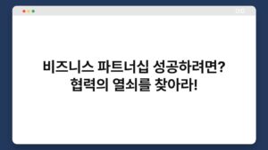 비즈니스 파트너십의 성공, 누구나 꿈꾸는 목표죠? 하지만 이 목표를 이루기 위해서는 단순한 협력 이상의 것이 필요합니다. 협력의 열쇠를 찾는 것이 바로 그 핵심입니다. 파트너십이란 서로의 강점을 살리고, 약점을 보완하는 과정이기 때문입니다. 이 글에서는 비즈니스 파트너십을 ...