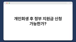 개인회생을 통해 새로운 시작을 다짐한 분들, 이제 정부의 지원금을 신청할 수 있는지 궁금하시죠? 재정적인 어려움에서 벗어나기 위한 첫걸음으로 개인회생을 선택한 만큼, 정부의 다양한 지원 혜택도 함께 알아보면 좋습니다. 이 글에서는 개인회생 후 정부 지원금 신청 ...