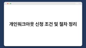 개인이 재정적으로 어려운 상황에 처했을 때, 개인워크아웃은 큰 도움이 될 수 있습니다. 하지만 신청하기 위해서는 몇 가지 조건과 절차를 알아야 합니다. 이 글에서는 개인워크아웃의 신청 조건과 절차를 정리해 드릴게요. 재정 문제로 고민하고 계신 분들에게 유익한 ...