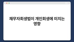 채무 문제로 고민하고 계신가요? 많은 분들이 채무자회생법과 개인회생의 관계에 대해 궁금해하실 텐데요. 이 글에서는 채무자회생법이 개인회생에 미치는 영향을 자세히 살펴보겠습니다. 이를 통해 어려운 상황에서 벗어나는 방법을 이해하고, 실질적인 도움을 받을 수 있는 기회를 찾을 수 ...