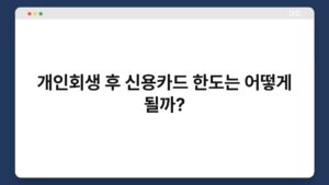 신용카드 한도, 개인회생 후에 어떻게 될까요? 많은 분들이 개인회생을 통해 새로운 시작을 결심하지만, 그 과정에서 신용카드 한도에 대한 궁금증이 커집니다. 개인회생 후 신용카드 한도는 어떻게 결정되는지, 그리고 어떤 점을 염두에 두어야 하는지 알아보겠습니다. 이 글을 ...