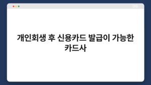 신용카드 발급, 개인회생을 경험한 분들에게는 다소 어려운 주제일 수 있습니다. 개인회생 후 신용카드 발급이 가능한 카드사에 대한 정보는 많은 분들이 궁금해하는 부분이죠. 신용카드 발급이 제한될 것이라는 걱정, 이제는 잊어도 좋습니다. 여러 카드사에서 개인회생 후에도 발급 ...