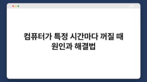 컴퓨터가 특정 시간마다 꺼지는 경험, 누구나 한 번쯤은 겪어보셨을 겁니다. 갑작스러운 전원 꺼짐은 작업 중인 파일을 잃게 만들고, 불안감을 조성하죠. 이런 상황은 여러 원인으로 발생할 수 있으며, 해결 방법도 다양합니다. 이번 글에서는 컴퓨터가 특정 시간마다 ...
