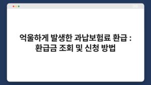 억울하게 과납된 보험료로 인해 환급금을 받을 수 있다는 사실, 알고 계셨나요? 많은 분들이 자신도 모르게 과납보험료를 내고 있는 경우가 많습니다. 하지만 걱정하지 마세요. 환급금 조회와 신청 방법을 통해 쉽게 해결할 수 있습니다. 이 글에서는 억울하게 ...
