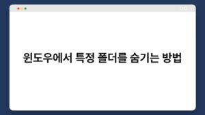 윈도우에서 특정 폴더를 숨기는 방법을 알고 계신가요? 중요한 파일이나 개인적인 자료를 다른 사람에게 보이지 않게 하고 싶다면, 폴더 숨기기는 유용한 방법입니다. 이 글에서는 간단한 단계로 폴더를 숨기는 방법을 안내해 드릴게요. 이제 더 이상 걱정하지 마시고, ...