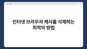 인터넷을 사용할 때, 브라우저의 캐시가 쌓이는 것은 흔한 일입니다. 하지만 이 캐시는 때때로 웹사이트의 로딩 속도를 저하시킬 수 있습니다. 그렇다면 인터넷 브라우저 캐시를 삭제하는 최적의 방법은 무엇일까요? 이 글에서는 캐시 삭제의 필요성과 다양한 방법을 살펴보며, ...
