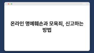 온라인에서의 소통이 활발해지면서, 명예훼손과 모욕죄에 대한 관심도 높아지고 있습니다. 특히, 온라인 명예훼손은 누구나 쉽게 피해자가 될 수 있는 문제입니다. 이러한 상황에서 어떻게 대처해야 할지, 그리고 신고하는 방법에 대해 알아보겠습니다. 법적인 조치를 취하는 것이 두렵고 복잡하게 ...